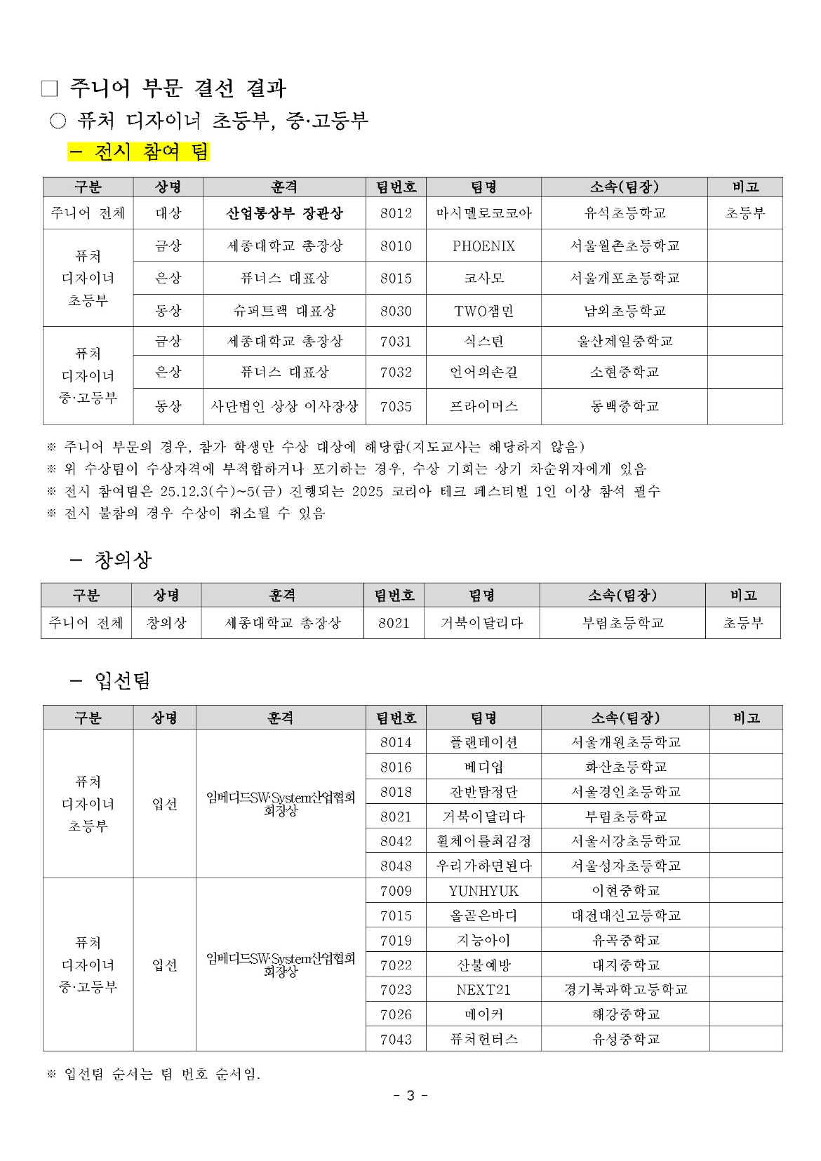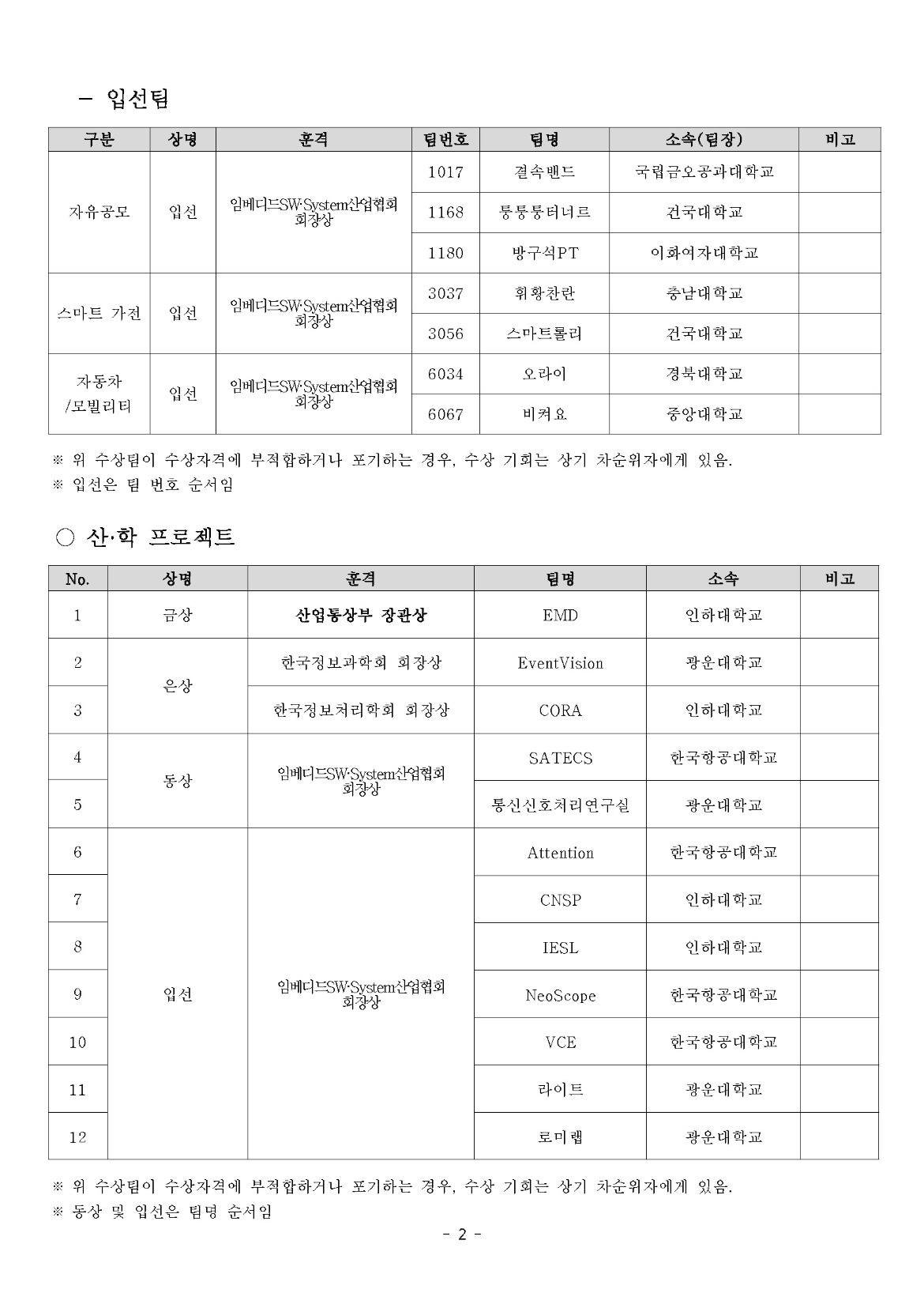 제23회 임베디드SW경진대회 결선 결과(최종 수상팀) 안내드립니다.