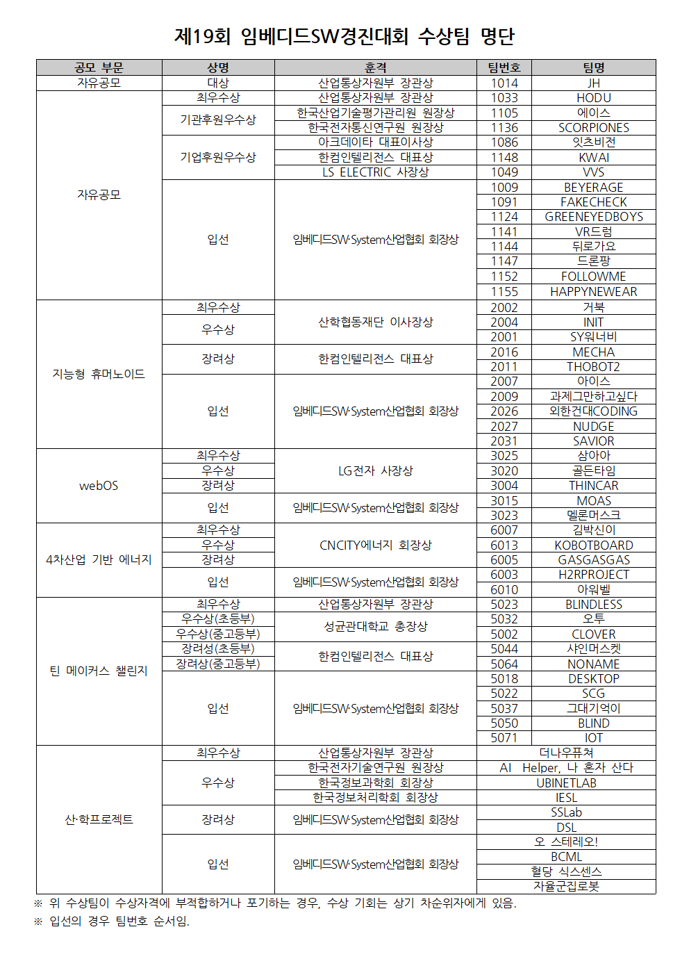 앞으로도 임베디드SW경진대회에 많은 관심 부탁드립니다.